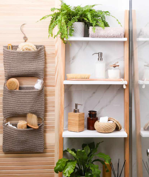 Hanging storage baskets offer a practical and stylish way to store small items like toiletries, cleaning supplies, or beauty products. These baskets can be hung on hooks, towel bars, or inside cabinets, keeping everything organized and off the countertop. They are especially useful in bathrooms where countertop space is limited.
